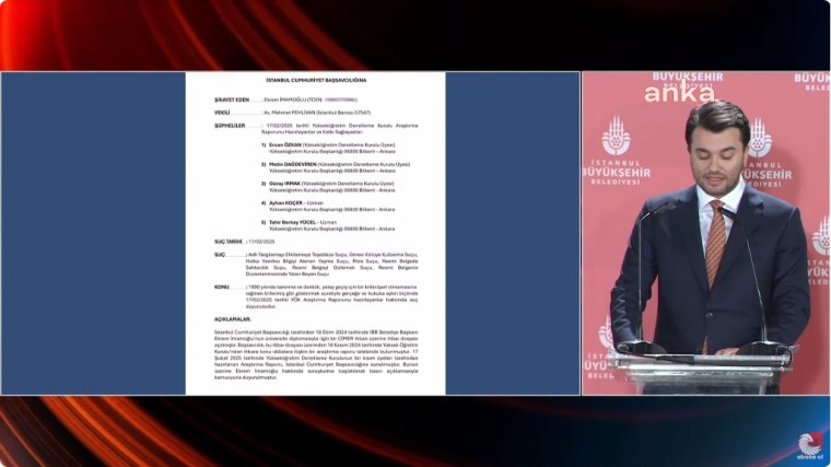 İstanbul Büyükşehir Belediye (İBB) Başkanı Ekrem İmamoğlu, üniversite yatay geçişi ve diplomasına ilişkin hazırlanan YÖK raporu ve YÖK raporunu hazırlayan 5 kişi hakkında hakkında suç duyurusunda bulundu.