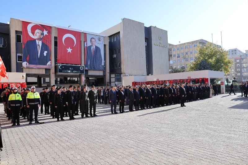 Hükümet Konağı önündeki törene katılan Mardin Büyükşehir Belediyesi Genel Sekreteri Kemalettin Sakin, Atatürk Anıtı’na çelenk sundu. Törende saygı duruşunda bulunuldu, İstiklal Marşı okundu.